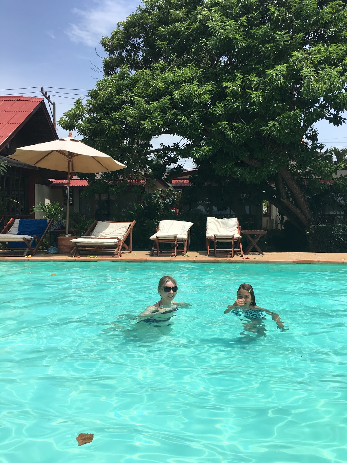 Years from now, we'll look back and say, "Viv learned to swim in Thailand." That salt water pool was exactly what she needed to become a confident, joyful swimmer. And she's super close to diving now! All that's left is to learn that kick of the legs up into the air.